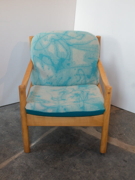 Ercol Modular 749 Lounge Chair - Hand Painted Art Piece - Turquoise