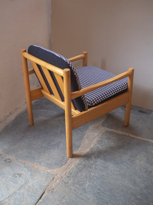 Ercol Modular 749 Lounge Chair - Fully Restored - Blue/White Houndstooth