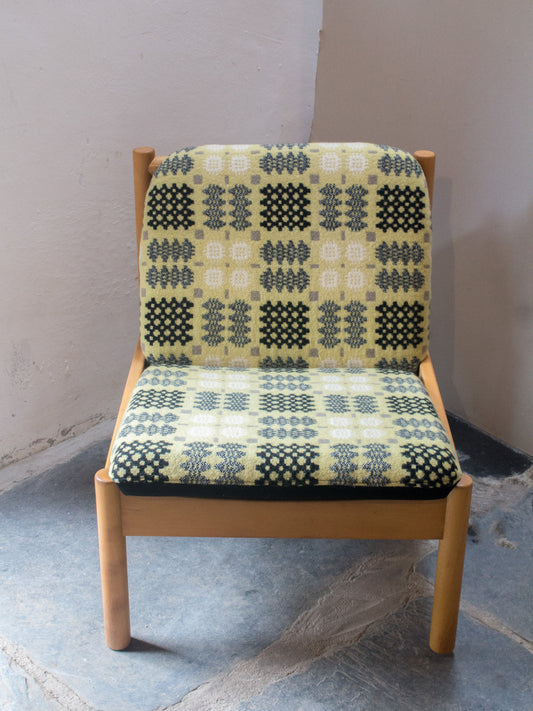 Ercol Blonde 747 Lounge Chair - Yellow/Black Welsh Tapestry