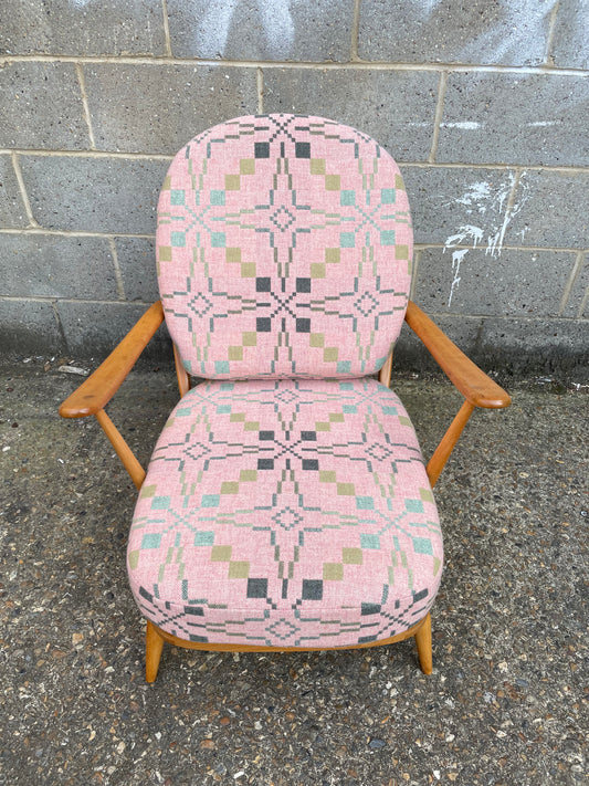 Melin Tregwynt - Vintage Rose - Welsh Tapestry- Ercol 478 Evergreen Tall Back Chair.