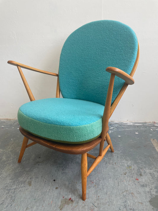 Trio Colour Block - Ercol 317 Grandfather Armchair - Olive Duck Egg Blue