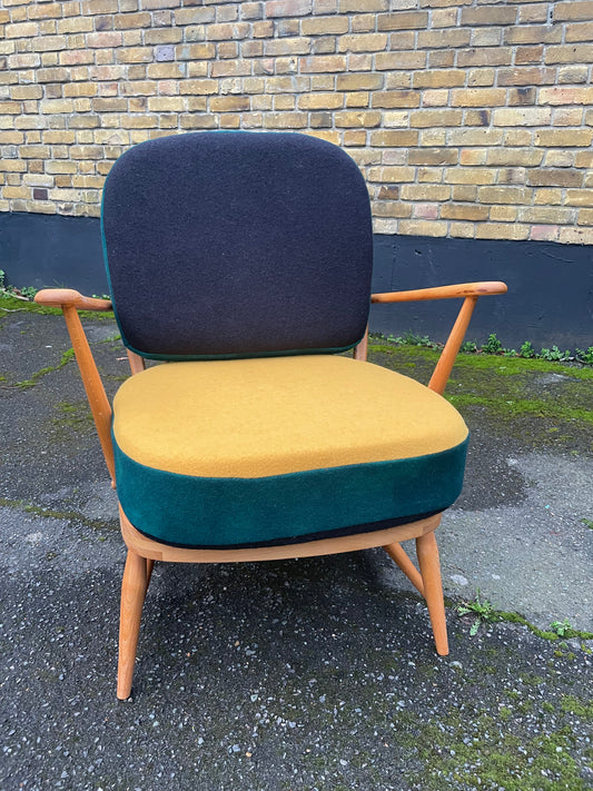 Trio Colour Block - Ercol Windsor 334 Armchair - Mustard Forest Grey
