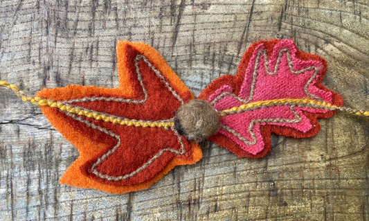 Made from hand-dyed vintage wool blankets, these decorations are made from leftover scraps. All 100% wool, recycled, environmentally friendly. Designed and made by us in our studio(in the garden/at the beach/while watching crap telly?) in Cornwall.