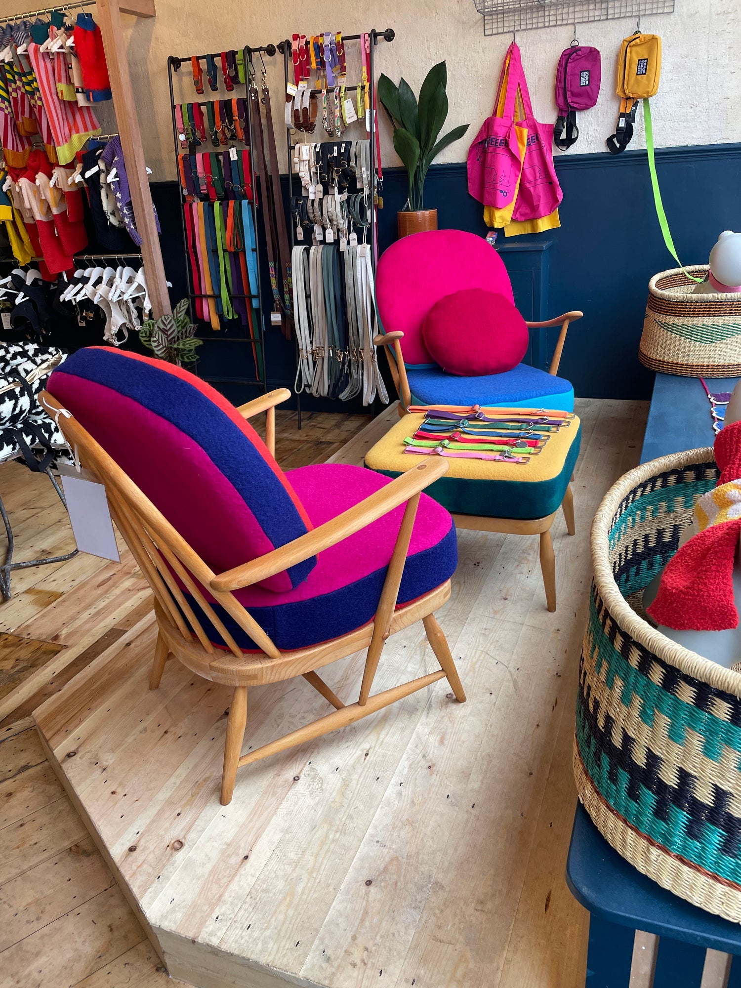You will find a selection of our vintage Ercol chairs in the wonderful Wild Bush. Mostly a god shop but also a lifestyle shop with fresh coffee plus a groomers!!! Why not pop with your pooch and try before you buy?