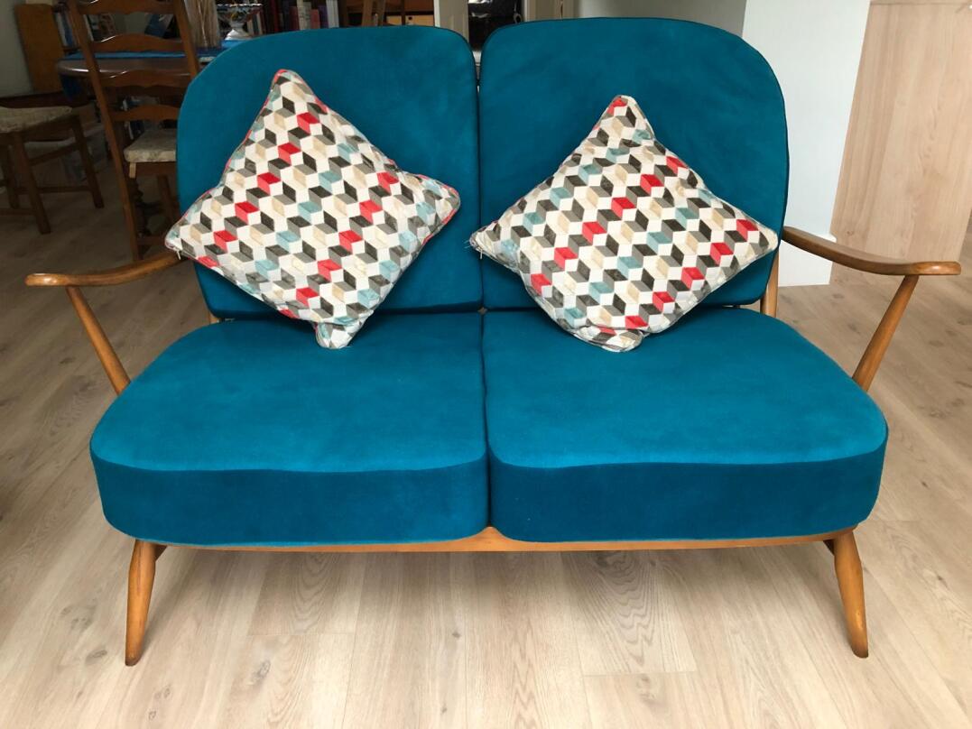 "We have now had our sofa for a few weeks and we are absolutely delighted with it. It was some thing of a 'step of faith' as we hadn't seen or sat on the model we ordered but we were in good hand and the result has exceeded our expectations. So, if you would like to put a review on your website, here it is:When we attended the Purbeck Folk Festival this summer, we certainly didn't expect to be ordering a refurbished Ercol sofa! However, a few weeks later we were the proud owners of this lovely 2 seater. The restoration work is beautifully done, the dyed woolen cushion covers are exactly the colour requested, as is the firmness of the cushions. We love it! Emily was excellent in her communication and personal service in addition to being an excellent furniture restorer."Alan & Mary - Wareham November '24.