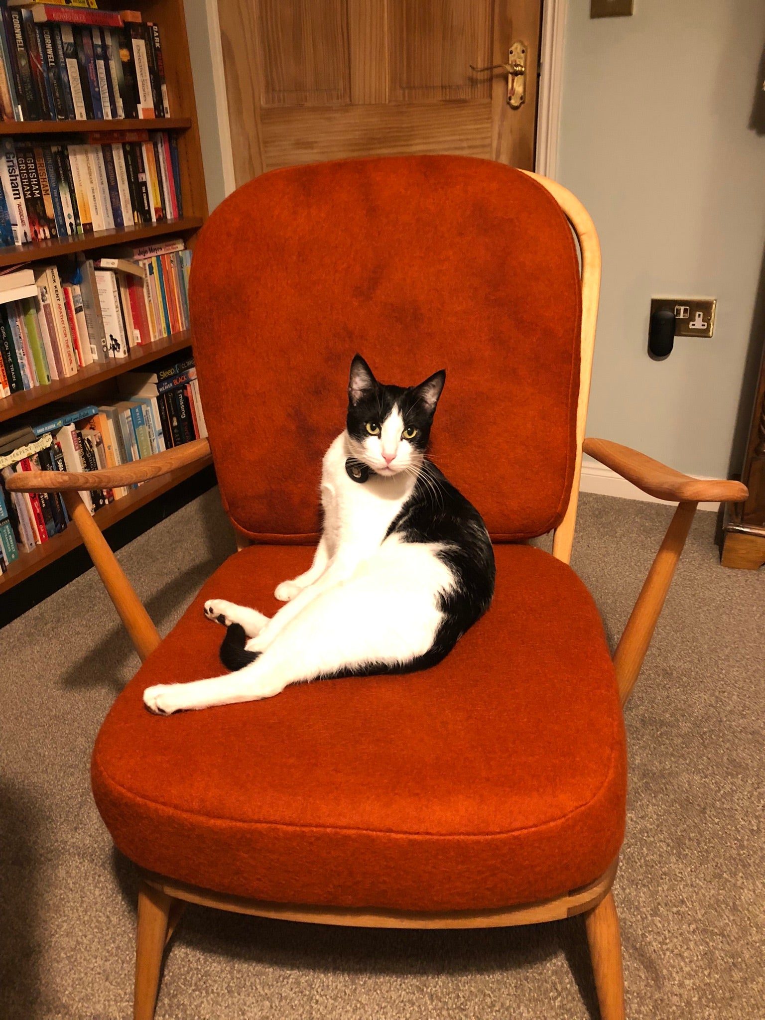 "We met Emily and the team at the 2024 End of the Road Festival. We weren't looking for a chair - but fell in love with The Fields ones. Our only issue was where to put it in our home - so had to measure up and choose from the fabulous colours before ordering. The service, delivery and communication have been great. The cushions are really well made, very neatly sewn and plump. The chair is so comfy - especially for the early morning newspaper read and for Charlie, our cat!"