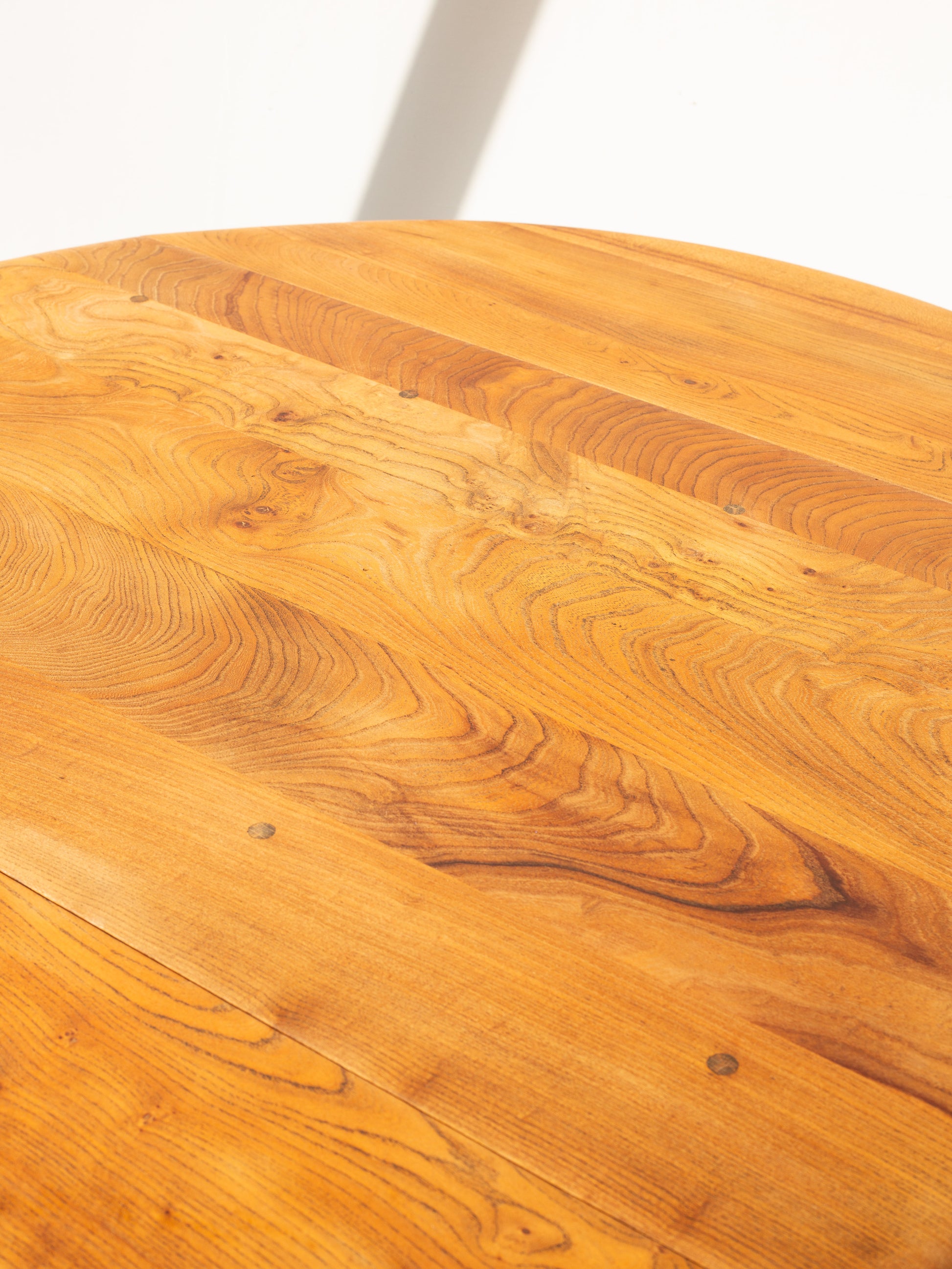 Wood - made of English Elm (top) and Beech (legs) this table was originally finished with a dark antique wax. Fully restored, stripped to light with a natural hand-oiled matt finish. We use Cornish Danish Oil, which is low in toxicity. So much so, it is food safe!