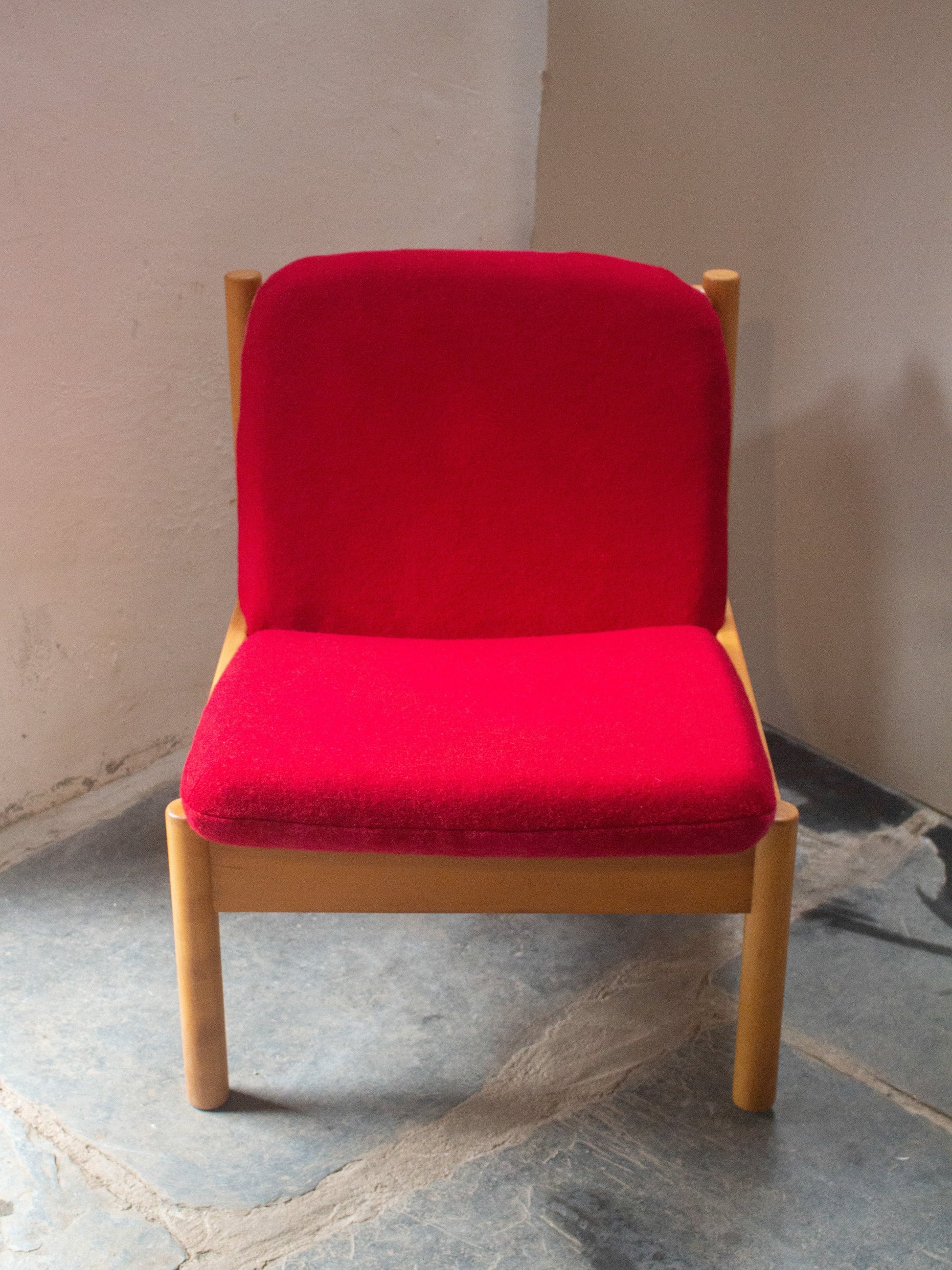 Webbing - newly strung with vintage (unused) webbing. We use the traditional Ercol loop and peg method, no staples.