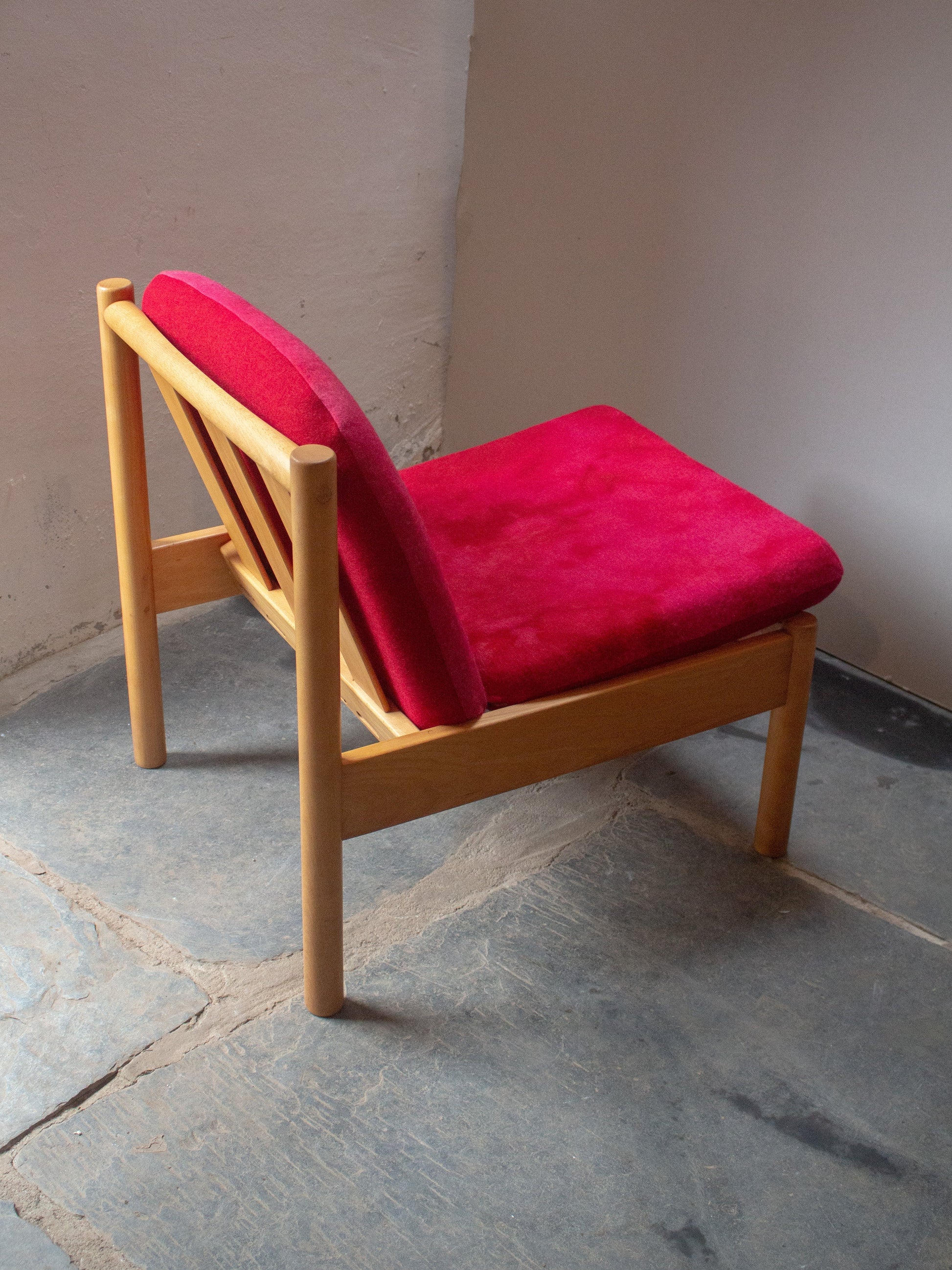 A mid century modern design classic, well-made and structurally sound that will last a lifetime. Part of the Modular Range, Ercol's more Modernist 1970's aesthetic. This style has seat and back cushions, a slatted back, webbed seat, and is armless!